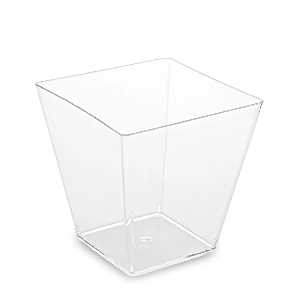 Pojemniki Finger Food "Piramida" 230 ml (20 sztuk) – nowoczesny design i imponująca pojemność. Wyeksponuj swoje dania w krystalicznie przezroczystych pucharkach o unikalnym, geometrycznym kształcie. Dzięki dużej pojemności 230 ml oraz wymiarom 72x72 mm, są idealne do serwowania pełnowartościowych sałatek, warstwowych deserów oraz dań typu cold buffet. Wykonane z wysokiej jakości tworzywa imitującego szkło, gwarantują stabilność i prestiżowy wygląd na każdym przyjęciu. Wybierz profesjonalną oprawę od Nakryjto.pl i nadaj swoim kulinarnym pomysłom nowoczesny wymiar!