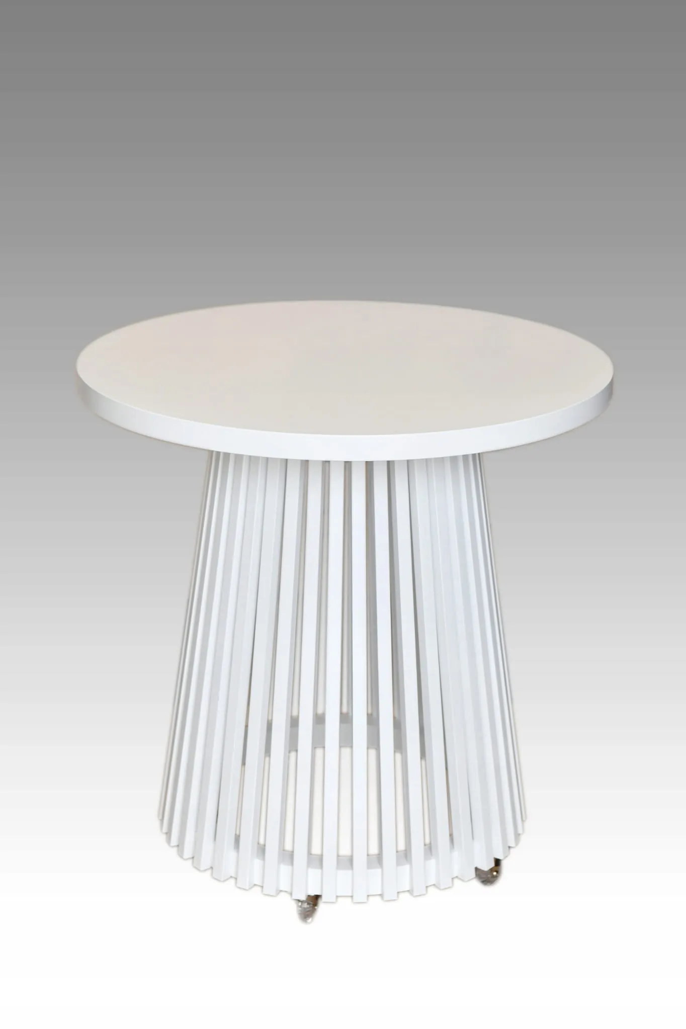 - Solidna Konstrukcja: Średnica blatu 80 cm zapewnia optymalną przestrzeń na tort, talerzyki oraz szampana. Stabilna podstawa eliminuje ryzyko kołysania się mebla podczas transportu.